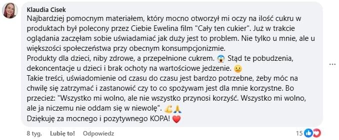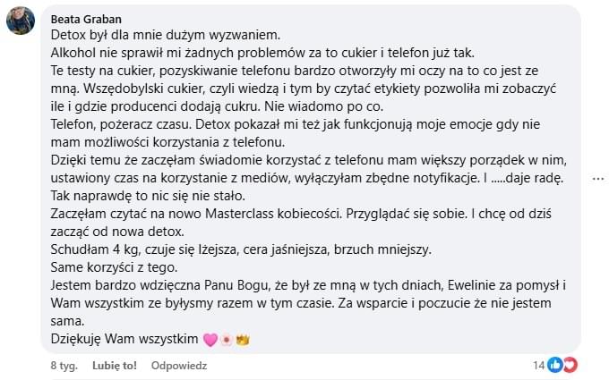 Autorka kursów, wyzwań i programów rozwojowych, Ewelina nieustannie angażuje się w projekty, które wspierają kobiety w ich osobistej drodze ku zdrowiu i wewnętrznej równowadze.