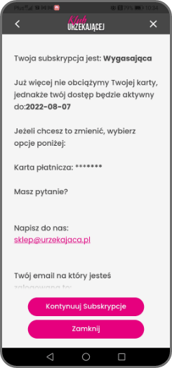 czy twoje konto jest aktywne oraz kiedy jest pobierana następna płatność.